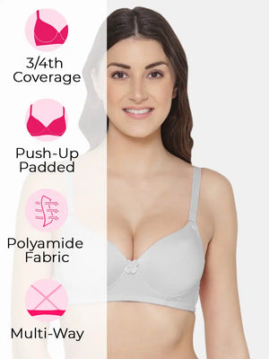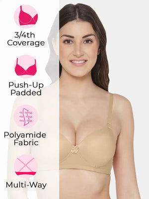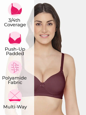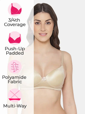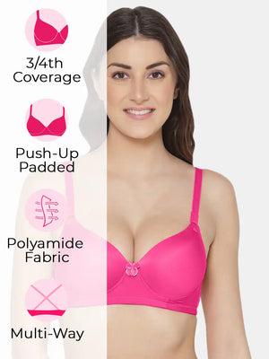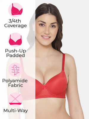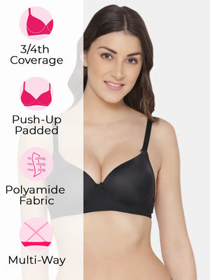 Elevate your confidence with the Sushme Heavily Padded Super Push-Up Bra. Crafted from luxurious Polyamide fabric, this Balconette-style T-Shirt Bra combines style with comfort. Offering 3/4th Coverage, Multiway Straps, and a wireless, seamless design, it adapts effortlessly to various outfits while providing a flattering silhouette. The heavily padded super push-up effect adds a touch of glamour, making it a perfect choice for enhancing your curves. Embrace the seamless blend of fashion and functionality with Sushme, where every detail is designed for confident and comfortable wear.