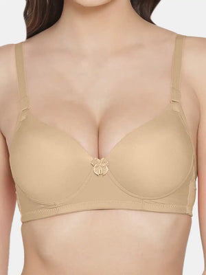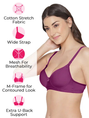 Sushme Women's Medium Padded Cotton Rich Bra - Seamless, Full Coverage, Single Hook, Cross Back T-Shirt Bra (Sushme-1035)
