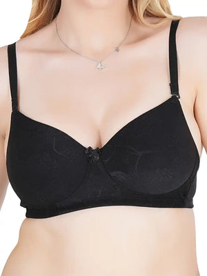 Home Tweens Women's Lightly Padded Full Coverage Designer Lace Bra- Available in B & C Cup Sizes, Wirefree, Rash-Free Straps (SUSHME 2510-BLK)