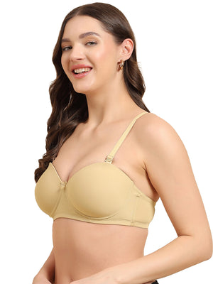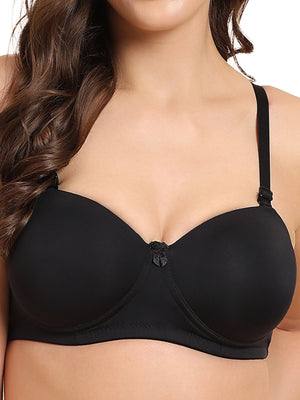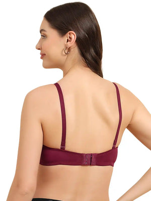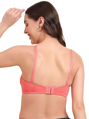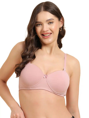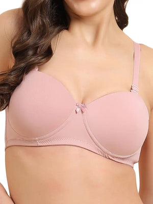 Sushme Medium Padded T-Shirt Bra with Wire free Seamless Cups & detachable straps. If you are looking for perfect everyday lingerie, this beautifully crafted cotton made bra is an apt pick for sure! (1) High coverage, Medium Padded (2) Seamless, non-wired cups give a smooth look. (3) Sleek and flexible elastic straps with sliders to adjust. (4) 2 row and 3 column hook and eye closure at back. (5) Comfortable to wear under your daily attires. (6) Detachable straps with sliders for adjust.