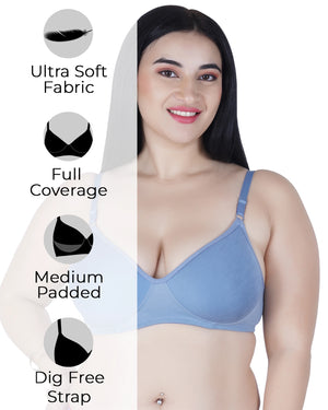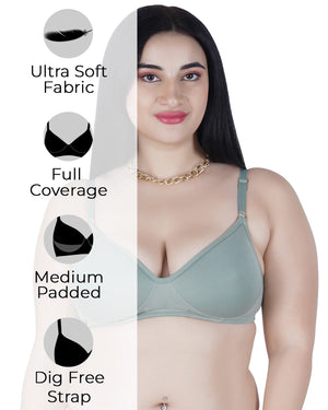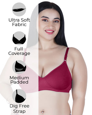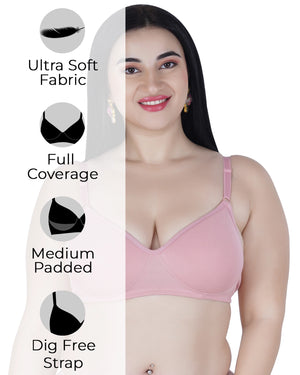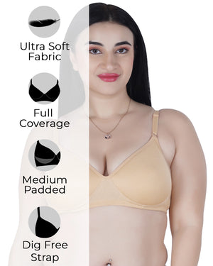 Sushme Lite Women's Medium Padded T-Shirt Bra | Full Coverage | Seamless Cotton Fabric | Wire-Free Comfort | Adjustable Straps | Everyday Casual Wear (Sushme-N 01)