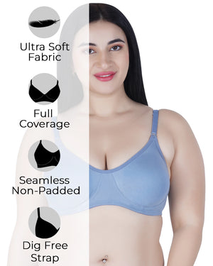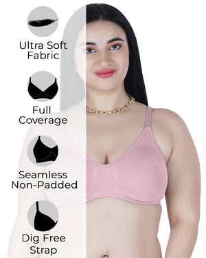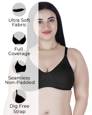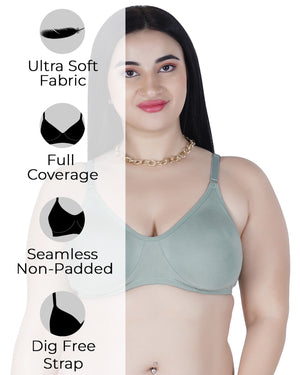 Sushme Lite Women's Non-Padded T-Shirt Bra | Full Coverage | Seamless Cotton Fabric | Wire-Free Comfort | Adjustable Straps | Everyday Wear | Casual Style (Sushme-N 51)