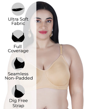 Home Sushme Lite Women's Non-Padded T-Shirt Bra | Full Coverage | Seamless Cotton Fabric | Wire-Free Comfort | Adjustable Straps | Everyday Wear | Casual Style (Sushme-N 51)