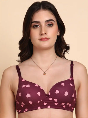 Sushme Medium Padded Cotton Rich Bra - Full Coverage, Seamless, Multiway Straps, Wirefree Everyday T-Shirt Bra (Sushme 15339-PRINTED)