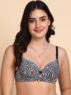 Sushme Medium Padded Cotton Rich Bra - Full Coverage, Seamless, Multiway Straps, Wirefree Everyday T-Shirt Bra (Sushme 15340-PRINTED)