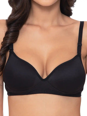 Sushme Heavily Padded Push-Up Bra - Cotton Rich - Balconette - 3/4th Coverage, Seamless, Wireless, Multiway Straps - T-Shirt Bra (Sushme 15-BLK)