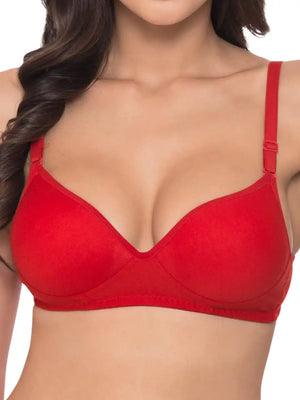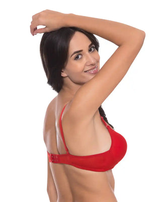 Sushme Heavily Padded Push-Up Bra - Cotton Rich - Balconette - 3/4th Coverage, Seamless, Wireless, Multiway Straps - T-Shirt Bra (Sushme 15-RD)