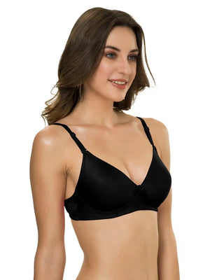 Sushme Lightly Padded Bra - Cotton Rich - Seamless, Full Coverage, Multiway Straps, Wirefree Everyday T-Shirt Bra (Sushme-1570-BLK)