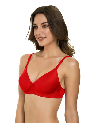 Sushme Heavily Padded Semi Push-Up Bra - Soft Polyamide Fabric - 3/4th Coverage, Wireless, Multiway Straps, Seamless - Everyday T-Shirt Bra (Sushme-199-RD)