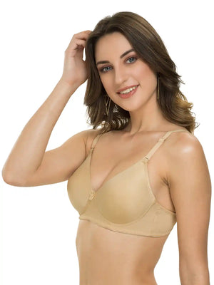 Sushme Heavily Padded Semi Push-Up Bra - Soft Polyamide Fabric - 3/4th Coverage, Wireless, Multiway Straps, Seamless - Everyday T-Shirt Bra (Sushme-199-SK)