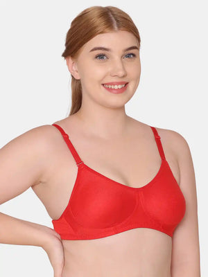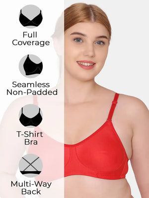 Sushme Non Padded Uniform Bra - Cotton Rich Fabric - Full Coverage, Multiway Straps, Wirefree, Seamless T-Shirt Bra (Sushme-253-RD)