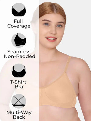 Sushme Non Padded Uniform Bra - Cotton Rich Fabric - Full Coverage, Multiway Straps, Wirefree, Seamless T-Shirt Bra (Sushme-253-SK)