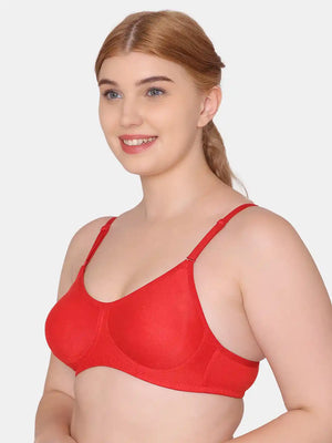 Sushme Non Padded Single Hook Bra - Cotton Rich Fabric - Full Coverage, Multiway Straps, Wirefree, Seamless T-Shirt Bra (Sushme-285-RD)
