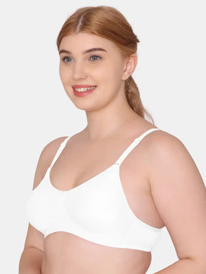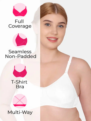 Sushme Non Padded Single Hook Bra - Cotton Rich Fabric - Full Coverage, Multiway Straps, Wirefree, Seamless T-Shirt Bra (Sushme-285-WH)
