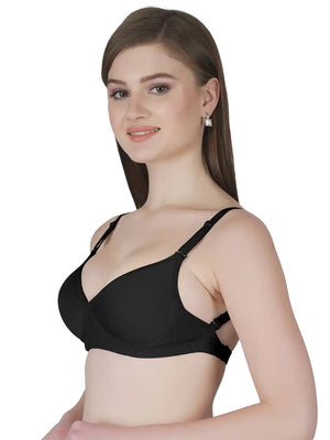 Sushme Transparent Lightly Padded Backless Bra - Cotton Rich - Seamless, Full Coverage, Multiway Straps - T-Shirt Bra (Sushme 516-BLK)