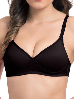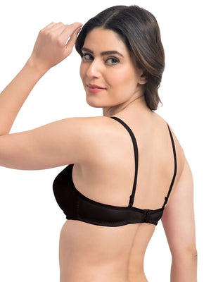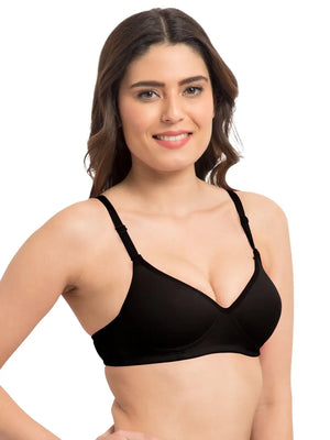 Sushme Super Soft Medium Padded Bra - Cotton Rich - Full Coverage - Wirefree - Multiway Straps - Seamless T-shirt Bra (Sushme 5413-BLK)