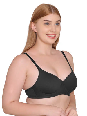 Sushme Lightly Padded Super Soft Bra - Cotton Rich - Full Coverage, Multiway Straps, Wireless, Seamless- T-Shirt Bra (Sushme 611-BLK)