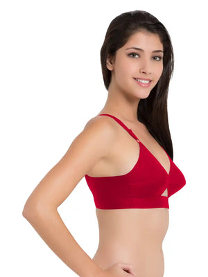 Sushme Centre-Fit 100% Cotton - Minimiser - Non-Padded, Full Coverage, Wireless Seamed Bra(Sushme CLY-RED)