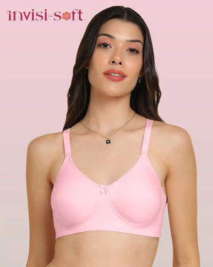 Sushme Invisi-Soft Easy-Fit Seamless Bonded Lightly Padded Bra | Full Coverage | Elastic-Free Comfort | Wire-Free | Elastic-Free Side Wings | B. C. D Cup Sizes(Sushme IS 1013-PLM)
