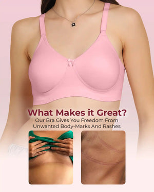 Experience next-level comfort with our Easy-Fit Bonded Seamless Technology Padded Bra, designed for a smooth, second-skin feel under any outfit. Say goodbye to rashes and red marks with the No-Elastic Bottom Band, offering irritation-free comfort you can rely on all day. The No-Elastic Armhole ensures zero digging or pinching, giving you complete freedom of movement without compromise. Perfectly engineered for all-day wear, it’s the ultimate blend of style, function, and unmatched comfort. Whether at work, relaxing at home, or on the go, this bra moves with you—keeping you confident, comfortable, and supported from morning to night. Seamless perfection, now made effortless.