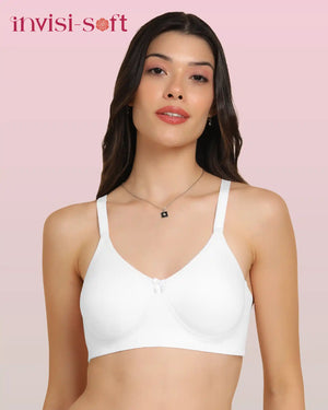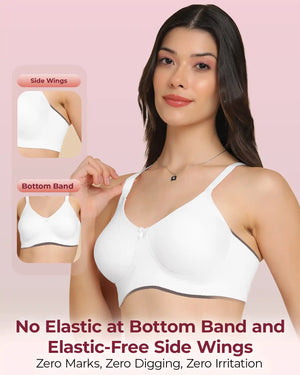Sushme Invisi-Soft Easy-Fit Seamless Bonded Lightly Padded Bra | Full Coverage | Elastic-Free Comfort | Wire-Free | Elastic-Free Side Wings | B. C. D Cup Sizes(Sushme IS-1013-WH)