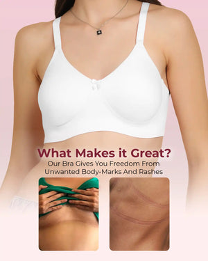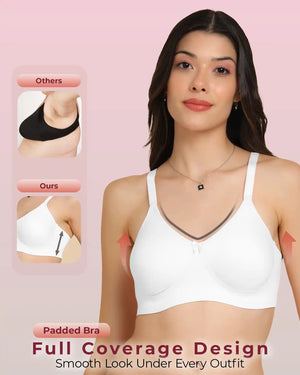 Experience next-level comfort with our Easy-Fit Bonded Seamless Technology Padded Bra, designed for a smooth, second-skin feel under any outfit. Say goodbye to rashes and red marks with the No-Elastic Bottom Band, offering irritation-free comfort you can rely on all day. The No-Elastic Armhole ensures zero digging or pinching, giving you complete freedom of movement without compromise. Perfectly engineered for all-day wear, it’s the ultimate blend of style, function, and unmatched comfort. Whether at work, relaxing at home, or on the go, this bra moves with you—keeping you confident, comfortable, and supported from morning to night. Seamless perfection, now made effortless.
