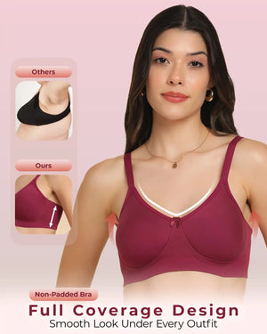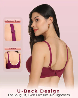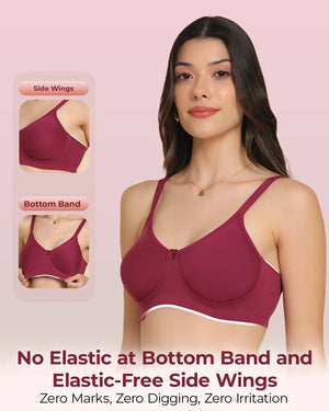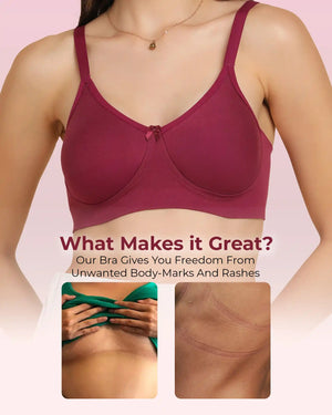 Experience next-level comfort with our Easy-Fit Bonded Seamless Technology, designed for a smooth, second-skin feel under any outfit. Say goodbye to rashes and red marks with the No-Elastic Bottom Band, offering irritation-free comfort you can rely on all day. The No-Elastic Armhole ensures zero digging or pinching, giving you complete freedom of movement without compromise. Perfectly engineered for all-day wear, it’s the ultimate blend of style, function, and unmatched comfort. Whether at work, relaxing at home, or on the go, this bra moves with you—keeping you confident, comfortable, and supported from morning to night. Seamless perfection, now made effortless.