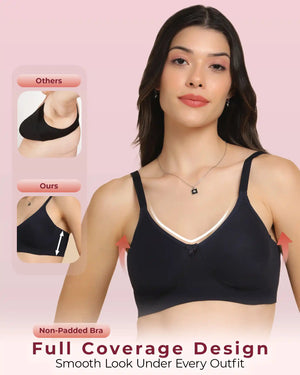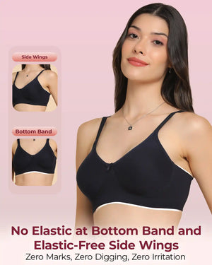 Experience next-level comfort with our Easy-Fit Bonded Seamless Technology, designed for a smooth, second-skin feel under any outfit. Say goodbye to rashes and red marks with the No-Elastic Bottom Band, offering irritation-free comfort you can rely on all day. The No-Elastic Armhole ensures zero digging or pinching, giving you complete freedom of movement without compromise. Perfectly engineered for all-day wear, it’s the ultimate blend of style, function, and unmatched comfort. Whether at work, relaxing at home, or on the go, this bra moves with you—keeping you confident, comfortable, and supported from morning to night. Seamless perfection, now made effortless.