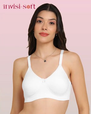 Sushme Invisi-Soft Easy-Fit Seamless Bonded T-Shirt Bra | Full Coverage | Elastic-Free Comfort | Wire-Free | Elastic-Free Side Wings | B. C. D Cup Sizes(Sushme IS 352-WH)