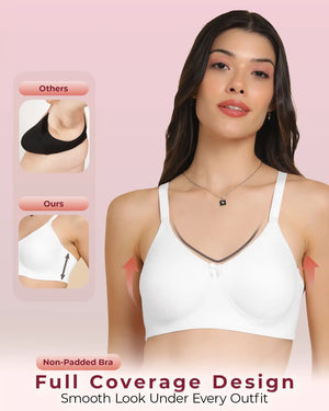 Experience next-level comfort with our Easy-Fit Bonded Seamless Technology, designed for a smooth, second-skin feel under any outfit. Say goodbye to rashes and red marks with the No-Elastic Bottom Band, offering irritation-free comfort you can rely on all day. The No-Elastic Armhole ensures zero digging or pinching, giving you complete freedom of movement without compromise. Perfectly engineered for all-day wear, it’s the ultimate blend of style, function, and unmatched comfort. Whether at work, relaxing at home, or on the go, this bra moves with you—keeping you confident, comfortable, and supported from morning to night. Seamless perfection, now made effortless.